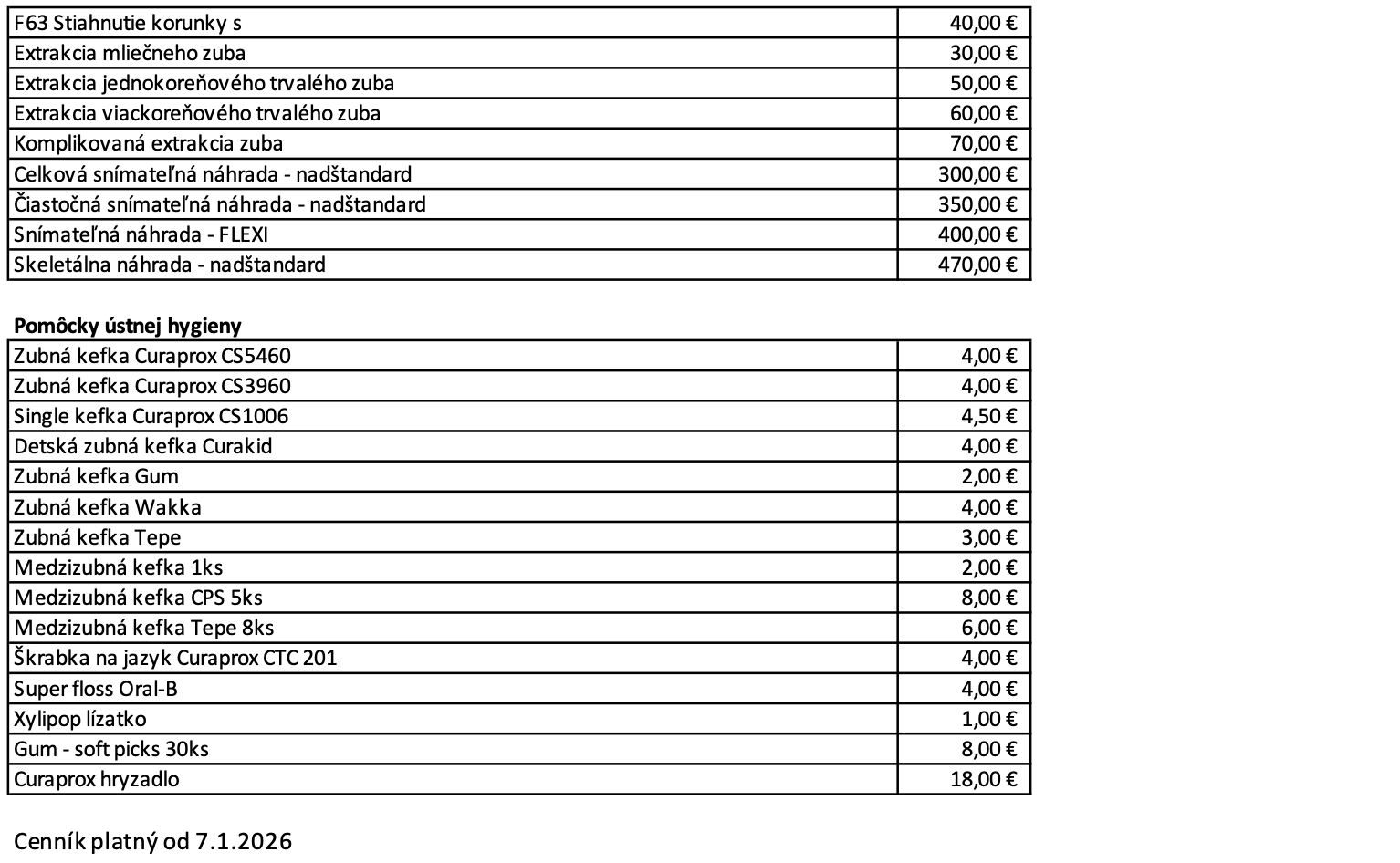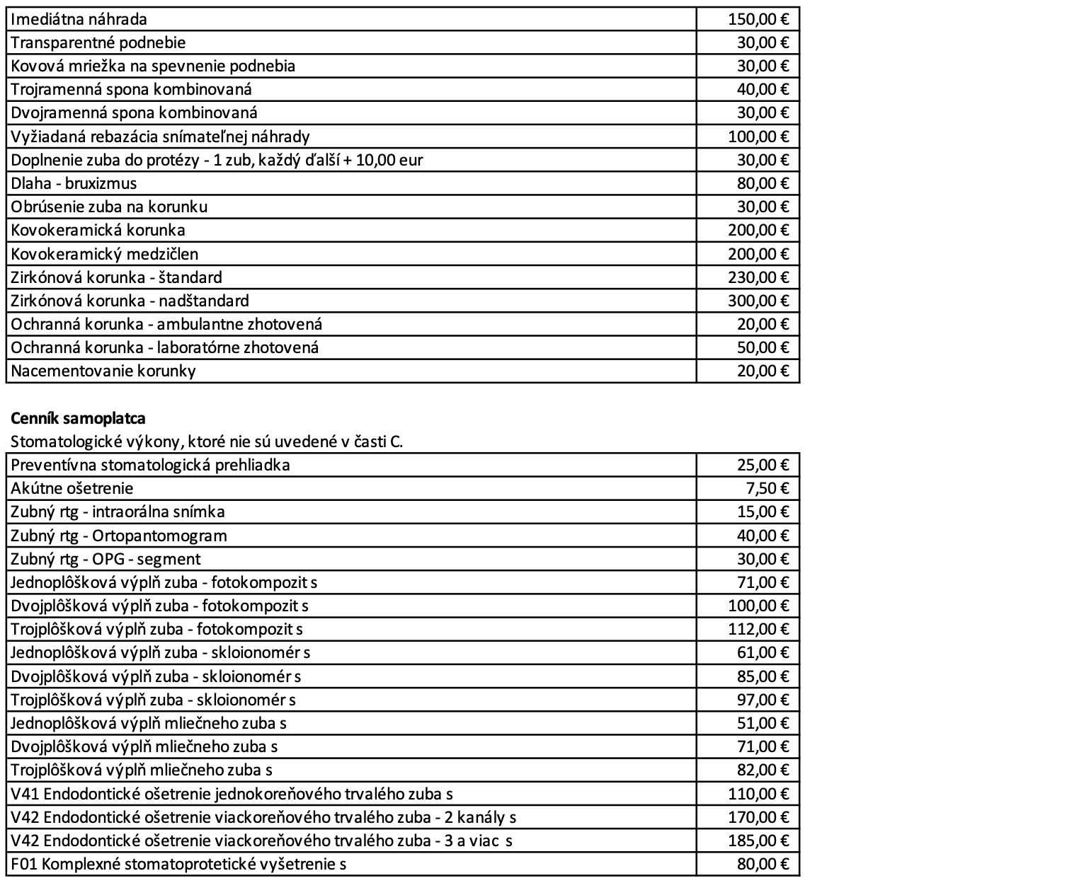 Cenník